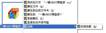 1.右击需要挂载的压缩文件,选择“挂载 -> 快速挂载”。
