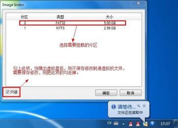 2.弹出虚拟机镜像“分区”对话框,选择需要挂载的分区,点击“确定”即可。