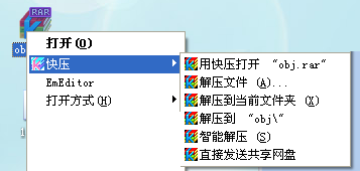 默认安装快压后,右键点击文件可以看到快压的6个功能按钮,非常占用菜单空间,见图1.1,