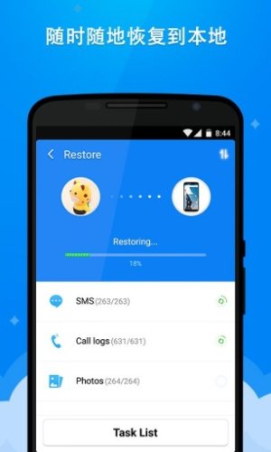 3.清爽干净的界面,无需帮助,备份/还原仅需请轻一点