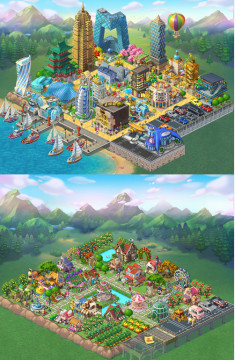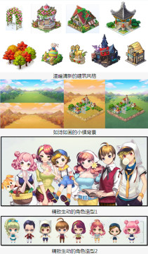 围绕着建设小镇的游戏主题,我们提供了丰富多样的生产建筑、景观建筑;高度自由摆放建筑之余,还可更换小镇背景。