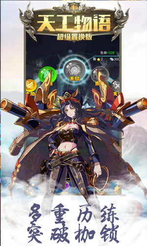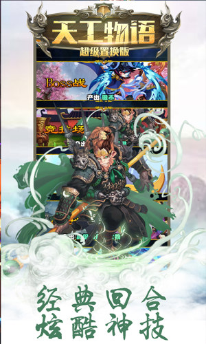 《天工物语超级置换版》是一款Q版西游卡牌挂机休闲手游!全新的画风,浓浓的神话气息,便捷的挂机玩法带你勇闯西游九九八十一难。丰富的英雄成长系统搭配多样的技能,各种时装、宠物、法宝、阵法、伙伴加成给每个玩家带来不一样的体验。绚丽的造型,超多神将选择,巅峰竞技,帮派争霸,丰富的活动玩法,让你的西游冒险更加炫酷精彩。