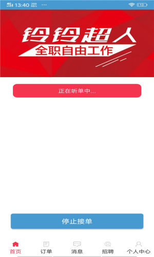 铃铃超人APP是铃铃用人的师傅版,一款即时蓝领人力资源匹配APP,师傅们通过铃铃超人APP打开“我要接单”开始在线接单,APP就会推送附近的用工需求,服务完成后薪酬立马结算,不想接单的时候点击“关闭接单”APP就会停止推送附近用工需求,自由安排时间工作,注册后也可以通过铃铃超人APP找工作,平台上所有招聘信息都经过严格审核真实有效。铃铃超人,全职自由工作!