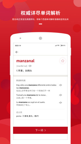 具有西语查词,分级词书背单词功能,精准匹配各级别用户对词汇记忆的需求,