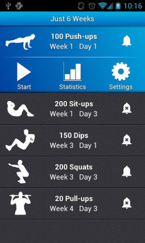 Just 6 Weeks具备非常简单的界面,功能方便,可自定义。训练、提醒、统计,所有一切都只需双击。现在没有什么能让您从训练中转移注意力了