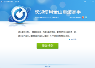 金山重装高手重装系统,使用金山云重装引擎,智能匹配用户系统与云端微软标准系统差异,动态下载系统文件和注册表,然后经过重装引擎重新封装和配置系统,