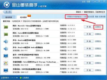 (1)如果您是新装系统用户,或者是电脑中有硬件设备不生效的情况,可以使用金山重装高手为您安装驱动程序。