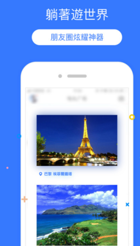 4.躺着游世界:你也可以将当前位置改成纽约巴黎,然后在微信朋友圈或者微博发一张照片,在朋友面前炫耀一把。赶快安装体验吧!