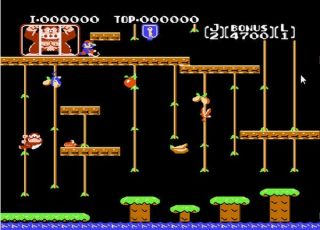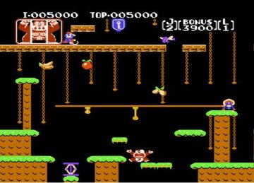 《FC大金刚2》游戏最大的槽点恐怕就是攻受互换了,遥记得最初的大金刚1代害死大猩猩一直丢着酒桶拼命的砸着马里奥而马里奥奋力的救着他的公主,而2代中,这一切都反了过来,马里奥成为了大魔王,而我们的小猩猩要奋力的救出他的爸爸。