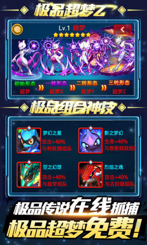 5.可在线抓宠,最强力精灵超梦等你来抓捕!进化前进化后都炫酷吊炸天!