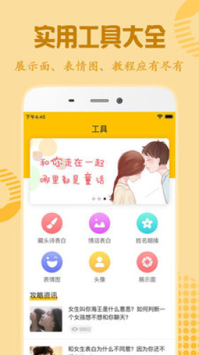 4、实用小工具。藏头诗生成器、情话表白工具、展示面、姻缘预测等功能为您精心准备。