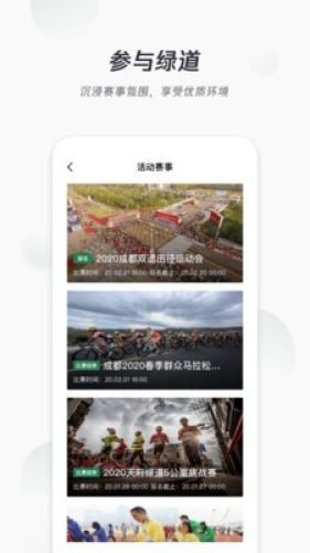 若您是运动爱好者,App为您准备可运动助手,帮助您计算在绿道内的运动线路、消耗能量,及将运动结果分享到朋友圈,也可以参与朋友间的运动排名。