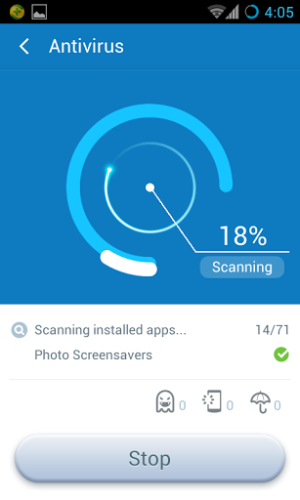 国际版的360手机卫士利用双层保护机制,采用360 QVS +云引擎,配合简单便捷的一键扫描功能,可快速扫描手机中所有的应用程序与安全隐私漏洞,检测出手机中是否存在手机病毒、恶意软件以及系统和隐私安全漏洞等内容,一旦发现威胁,立即通知用户并建议一键查杀。