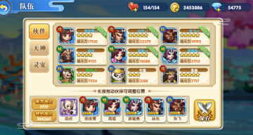 在进入关卡前,当然是要配置上阵的伙伴啦,配置好合理的阵容,才能应对关卡中的险象环生哦。点击冒险界面右下角的队伍设置,即可进入队伍界面,在这里可以更换想要的队伍配置、天神,配置好之后记得保存哦。