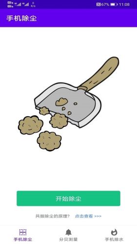 手机的扬声器会吸附很多的灰尘和铁粉,进而导致扬声器声音小,严重的会出现爆音,甚至没有声音。清灰APP利用共振原理,使灰尘振动脱离扬声器,从而达到清尘的效果。