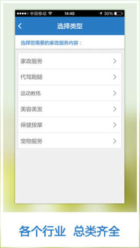 5.涵盖家政服务、美容美发、代驾跑腿、保健按摩、运动教练、宠物服务等多项服务类别