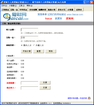 爱财个人所得税计算器计算的内容包括五险一金、年终奖、劳务报酬、稿费所得、工资薪金等,能够批量处理,支持货币大小写转换。