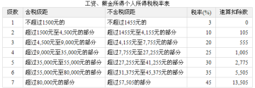 1、表中的含税级距与不含税级距,均为按照税法规定减除有关费用后的每次应纳税所得额;