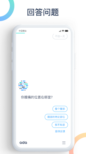 你好!我是Ada,你可以叫我爱达。爱达是你的人工智能健康管理伙伴,由医生和科学家组成的团队共同开发。爱达深入学习了数千种症状和疾病,可以帮助你及家人、朋友分析症状和可能的原因,并给出相应的建议。