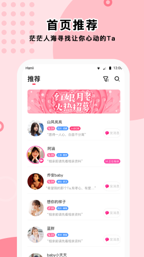 这是一款集视频、语音、文字聊天于一体的相亲秀场app,能通过位置实时找到你愿意倾诉的对象,来一场不分手的恋爱。