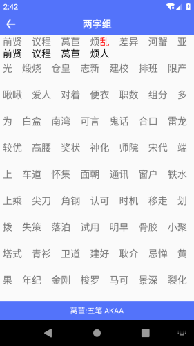 五笔反查app是一款手机五笔反查助手,软件可以帮助用户一键获取五笔及拼音编码,还拥有五笔打字练习功能,可以帮助用户更好的练习使用五笔输入打字。