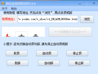 刷优酷视频顶踩工具是一款专门用来刷优酷视频顶和踩的工具,软件使用简单,支持多开,输入视频地址之后,就可以全自动顶和踩;优酷视频的排名与播放次数、顶踩次数都有关系,想要上传的视频获得一个很好的排名,可以将这两款工具结合起来使用,效果会很明显。