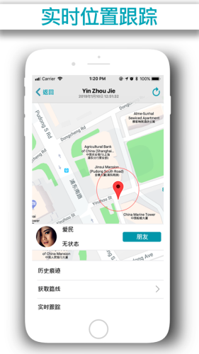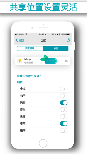 iMapp可以帮助您跟踪连接到该服务的亲朋好友,此外,还可以使用电话号码来定位人员的位置,无论对方的设备是否安装应用,一个电话号码即可实现定位。