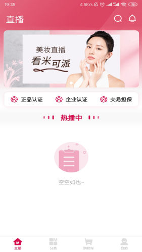 米可派APP是一款以“直播+商城”为模式,主打美妆护肤产品类的美妆直播APP,其品牌理念是让生活更精致,让购物更方便。主要以主播直播带货形式直销商品,实现直播购物的一站式购物体验,方便快捷。