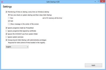 其他可配置设置可通过始终监视启动链接,在屏幕中央显示消息并在找到新链接时通知您,忽略系统服务,SVCHOST.exe文件,PrivacyRoot制作的程序,来使安全启动能够运行定期检查,以及由证书签名的证书,以及在启动时禁用管理权限。