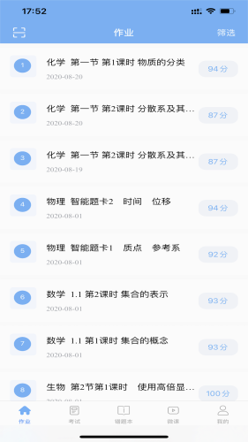 该应用集成了作业列表, 作业详情, 练习题和错题记录等统计图及数据展示, 便于学生统一查看