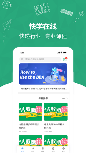 快学在线为能够保障快递学员更便捷的去学习,将线下部分课程,经专家,专业讲师的悉心录制,形成一套集线上学习,模拟练习,模拟考试等多元化的线上学习平台体系。