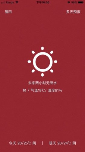 很多天气app都自带广告。然而知否天气将保持干净的风格,不需要等待数秒的app启动广告,不需要忍受天气界面的“牛皮癣”广告