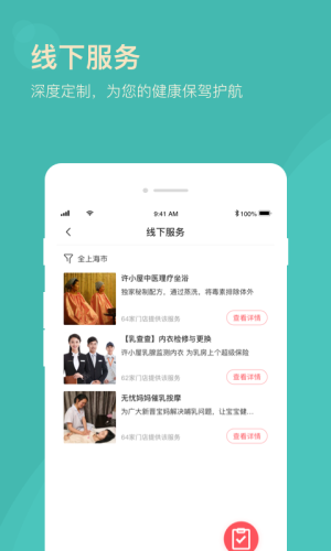 3、用户可以选择定制线下服务,享受专业的线下服务,为自己的健康保驾护航。