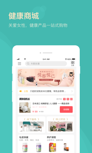 2、平台可以为大家提供很多健康相关产品,让女性可以一站式采购;