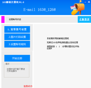 注册163邮箱前需设置好宽带帐号、图片打码和注册规则,使用优易163邮箱注册机能够完美通过163何种检查,另外注册时请尽量不要有其他操作。