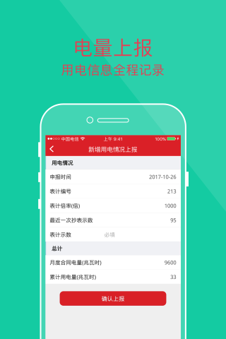 客户用电量实时上报及查看、用电量与合同电量对比,