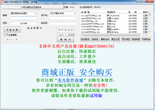 本工具支持中文用户名注册,注册快速稳定而且工作量少,使用金手镯淘宝小号注册机能够自动更换IP,自动注册邮箱,注册淘宝小号简单好用。