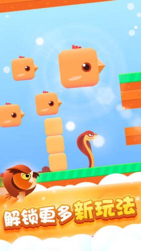 《方块鸟别跑》是一款以方块鸟闯关为主角的挑战冒险休闲益智游戏,玩家们将要帮助可爱的小鸟通过障碍的阻挡,它需要快速的到达终点以玩出各种难题的考验,它现在已经飞不起来了,你将通过最独特的方式能够让他安全的通过阻碍,利用下蛋的方式来搭建一个塔让自己顺利的通过挑战。狂热形态之中你将所向披靡,让你一路畅行到达终点,获得更的金币,解锁更多可爱造型的方块鸟去随你选择。感兴趣的就一起来玩吧。