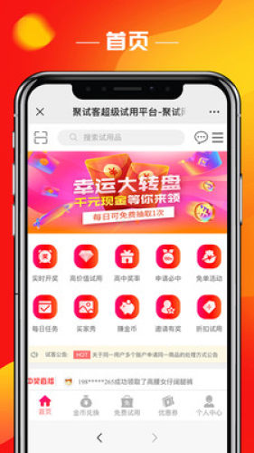 聚试客是一款超级优质的手机试用工具。在线找到精品试用,全部都是免费的。还有海量的优惠券,免费领取使用。安全可靠有保证。感兴趣的朋友不要错过了,快来下载体验吧。