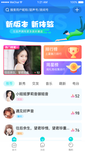 甜声是一款用户真实交友的工具。在这里找到超多好友,开展一段缘分。还能建立房间,和好友亲密互聊。快速脱单,收获精彩人生。感兴趣的朋友不要错过了,快来下载体验吧。