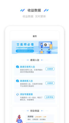兑货交易师app下载,一款专为兑货平台交易师打造的智能便捷的移动工作台,通过兑货交易师app随时查看收益数据,提供一对一专属服务,更多功能请下载了解。