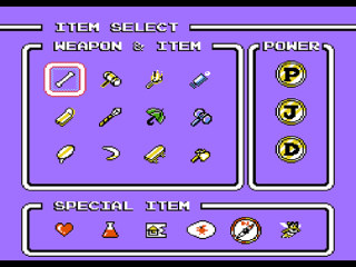 在开始游戏下面选择PASSWORD中输入以下代码,可以获得全部的道具以及装备。