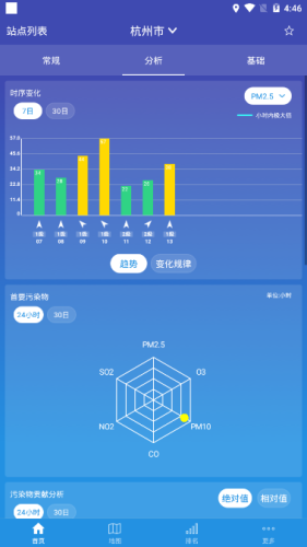 实时接入杭州市所有的乡镇街道空气质量监测情况,让市民一目了然的看到所在生活区域的空气质量,可以更好为锻炼、出行做好健康防护。