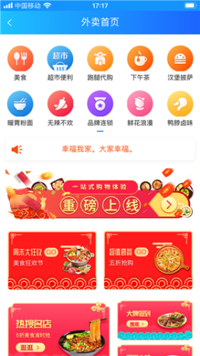幸福我家app,汇集了海量的生活功能,平台提供外卖,维修,家政,购物,招聘,酒店等多种生活功能。用户可以在平台上享受大量的内部活动,领取超多生活相关的优惠福利,使你在外出行消费时,干什么都有一定的优惠,快来试试吧。