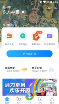 荆州方特旅游app是专为游客打造的一款智慧游园神器,适用于荆州方特东方神画乐园,用户通过本软件可以线上购买门票、套票、优惠票及年卡,无需取票和排队,快速入园,另外还可以查看乐园开放时间,提前知晓项目演出安排,轻松开启方特欢乐之旅。