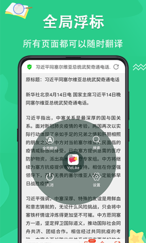 翻译王也可以使用智能浮标也可进行全页面翻译,对您打开的页面进行全局翻译,翻译实时、迅速,让您更加高效的阅读不同语言的内容。