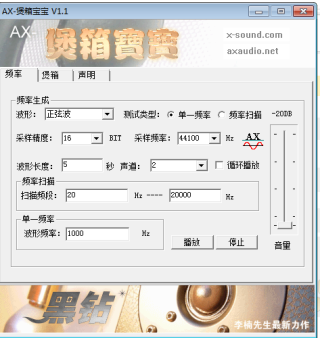AX煲箱宝宝一款纯软件的音频信号发生器,通过用户设置频率生成新的音频频率使用户音箱音质效果变得更好,是一款很好的测试音箱频率响应的工具,软件免费使用,无需安装,操作很简单,能够快速准确的帮助用户设置一段适合自己音箱的频率。