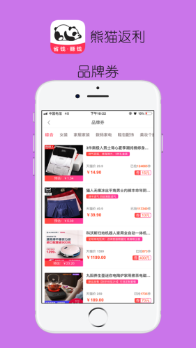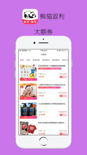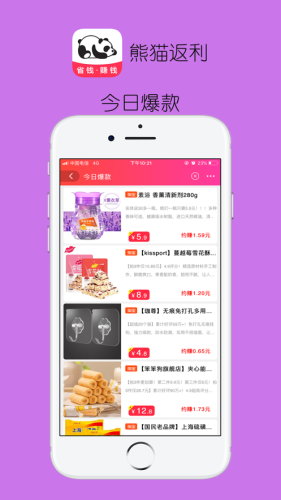 熊猫返利app下载安装,为广大的网购朋友提供丰富多元的优惠券资源,同时熊猫返利app还有各类消费推荐高佣返利,也是零风险零门槛的电商轻创业选择,欢迎下载。