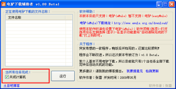 电驴是一款超级强大的资源搜索下载工具,这是毋庸置疑的,但电驴在下载完任务后不能自动关机,这不知又让多少小伙伴揪心,然而电驴下载辅助者能够关联电驴,当电驴下载完资源后可自动关机。