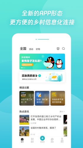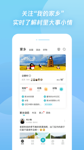 腾讯为村是一款面向中国乡村用户的社区型应用,旨在通过信息连接、情感连接及服务连接,从乡民、家庭、村庄三个维度上,提升广大村民的精神生活及物质生活品质。